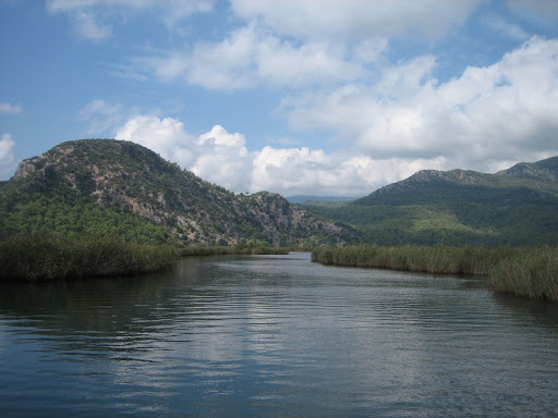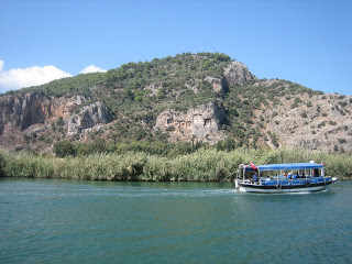 Ertesi gün biraz rüzgarlı. Ama tekneye binemeyecek kadar değil. Denize açılıyoruz. Yamaçlarda kral mezarlarını görerek seyrimize başlıyoruz. Arkasından derede yol almaya devam ediyoruz. Derenin genişliği kimi yerlerde iki metreye kadar düşerken kimi yerlerde hayli geniş. Kıvrıla kıvrıla gidiyoruz. Etraf sazlıklarla dolu. Haydi biraz etrafı seyredelim.