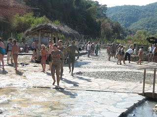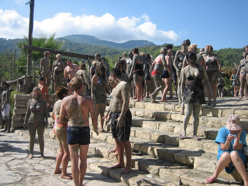 Ardından kısa bir öğle yemeğ molası veriliyor. Yemeklerimizi yerken ortamın keyfini çıkarıyoruz. Sonra çamuru meşhur bir yere götürüyorlar bizi. Herkes heryerine çamurları sürüyor. Öylece bekliyor. Sonra da duşunu alıyor. Çok faydalıymış ama ben sadece kollarıma sürüyorum. Buyrun seyredelim…
