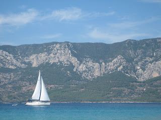 Kleopatra adasına varınca önce antik kenti ziyaret etmek istiyorum. Agorayı, tiyatroyu görmek istiyorum. Hem antik kent adanın biraz iç tarafına denk geliyor. Biraz yürüyüş yapıp, terleyip arkasından o pırıp pırıl suya girmek daha cazip geliyor. Antik kente doğru giderken tarifi zor bir manzaraya şahitlik yapıyorum. Orada o manzaranın karşısında duruyorum. Ne ileri ne geri gidesim kalıyor. Sadece orada olmak istiyorum. O manzaranın karşısında yaşamak istiyorum bir süre. Bakın bakalım manzaraya…Haksız mıyım yani ?