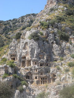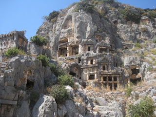 Şehrin ayakta kalan iki özelliği var. Birincisi kral kaya mezarları ikincisi tiyatrosu… İlk sizi karşılayan görüntü kaya mezarları…