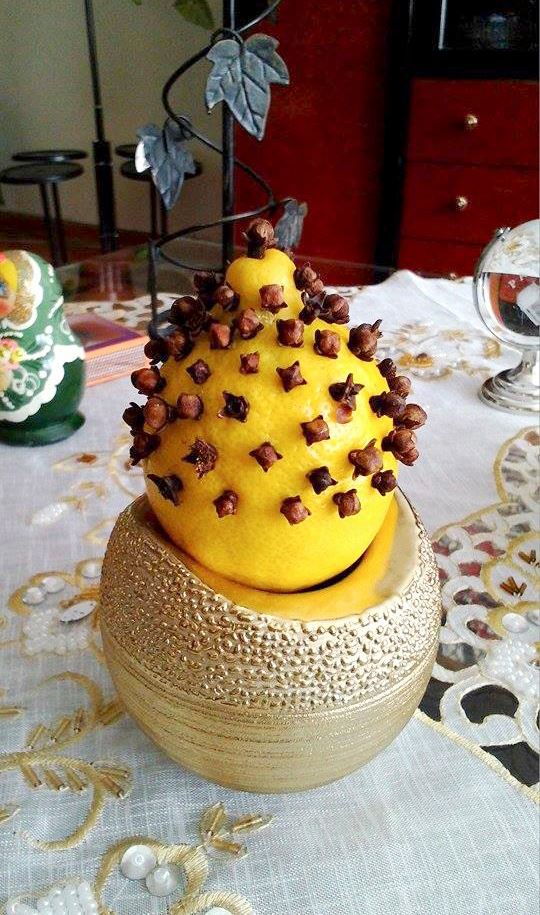 Hem de bir limon 25-30 tane karanfil ile.