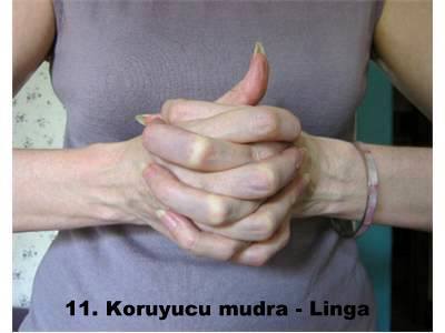 11. Koruyucu mudra (Linga): Soğuk havalarda akciğerleri korumanın bir yolu olarak kullanılır, vücudun bağışıklık sitemini güçlendirir.