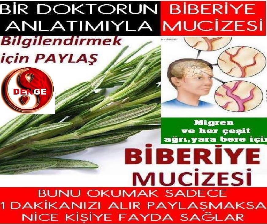 1. Eşim evliliğimizden önce başlayan migren ağrılarından şikayetçi idi ve cebinde bir suru ağrı kesici ilaçlarla dolaşır ve kriz anların…da da başımı kesin de bu ağrıdan kurtulayım’ derdi. Hacettepe Tip Fakültesi’nde 1980 başlarında MR’ çekilip migren teşhisi konuldu ama olumlu bir sonuç alamadık. 1983 yılında iş yerim Ankara Üniversitesi’nden Gazi Üniversitesi’ ne geçince burada da MR çekilip migren teşhisi konulunca migren tedavisi başladı. Verilen çeşitli haplar etkili olmayınca depresyon tedavisine başlayacağız dediler ve giderek değiştirilen ilaçlar sonucu eşim neredeyse 24 saat uyumaya başladı ilaçların etkisi ile. Bu aşamada ben tedavi ve ilaçları kestirdim. Bitkisel ilaç aramaya başladım ve tanıdığım bir zamanlar orman bakanlığında tıbbi bitkiler araştırma projesi’nde çalışmış emekli tanıdığım biberiye çayını tavsiye etti. Günde 5–6 fincan biberiye çayı tedavisine başladık ve 20–25 gün sonra migren, baş ağrıları sorunları bir daha gelmemek üzere sona erdi.