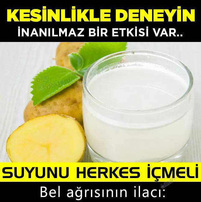 Patatesi kaynatarak elde ettiğiniz suyu soğutup için, bel ağrısından kurtulun. Yalnız patatesi kaynatmadan önce üzerindeki siyah lekelerden iyice arındın. İki haftada bir de bu suyu içmeye ara verin.