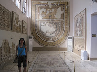Kafamı asıl kurcalayan mesele şu: Bu mozaikler neden yerdeeee??? Hiç anlayamıyorum. Bana göre şaheserler. Başlıbaşına bir yapıtlar. Niye duvarlara değil de yerlere yapılmışlar anayamıyorum. Gezerken mozaikler hakkında öğrendiklerim şöyle ; ilk çağlarda mozaikler siyah,beyaz ve kırmızı gibi renklerle yapılmaya başlanıp, sadece geometrik desenlerden ibaretmiş, sonra renklenip, dönemin sanatını yansıtmaya başlamışlar.