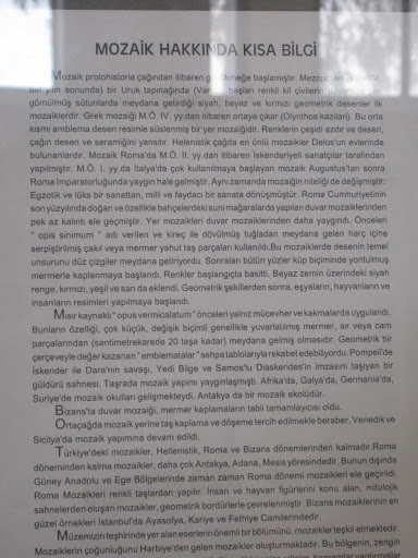 Antik şehirlerde gezerken  mozaiklerin sadece ucunu görüyorsunuz, gerisini çakıl taşlarıyla kapatıyorlar. Rüzgardan, güneşten, gelen gidenden zarar görmesinler diye… Ama o zaman benim hevesim kursağımda kalıyor .  Yerde, çakılların arasından, küçücük bir parça olarak gördüğüm mozaikler bana yetmiyor… Eee işte o zaman mozaikleriyle ünlü müzelere gitme vaktimin geldiğini anlıyorum. Müzelerde mozaikleri tablo gibi duvara da asılıyor, yerde de sergileniyor. Bence tavana bile konabilirler. Öyle güzeller ki…