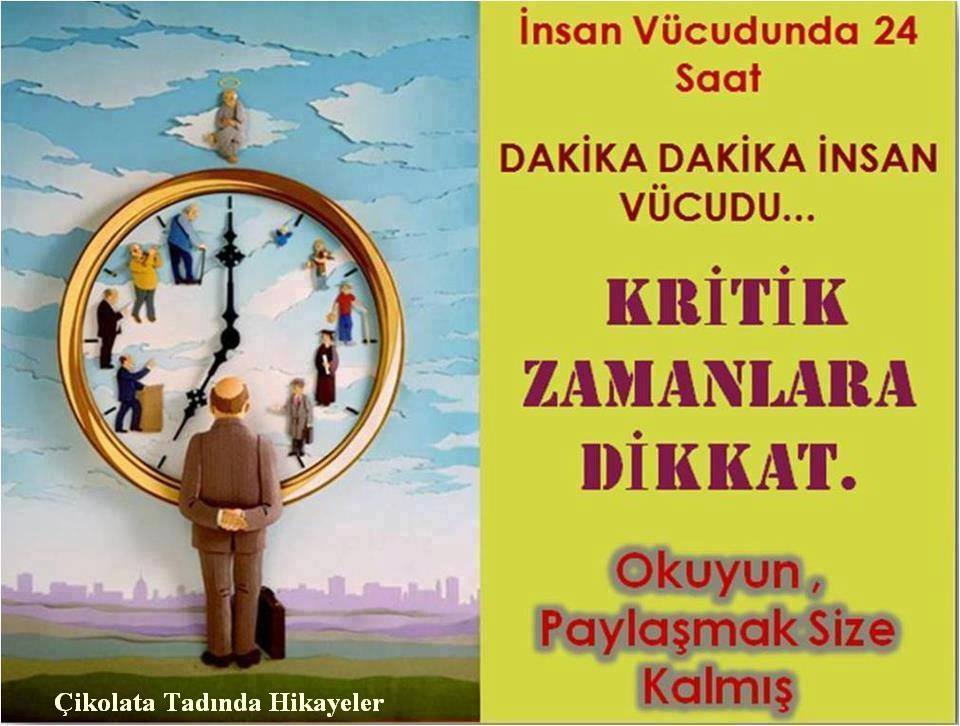 20.00 Karaciğerdeki yağ düzeyi düşüyor ve kirli kan kalbe her zamankinden daha fazla akıyor. Alerjisi olanlar ve astımlılar ilaçlarını bu saatte almalı. Etkisi hemen görülüyor. Antibiyotikler de az dozda alınsa bile etkileri en üst düzeyde oluyor.